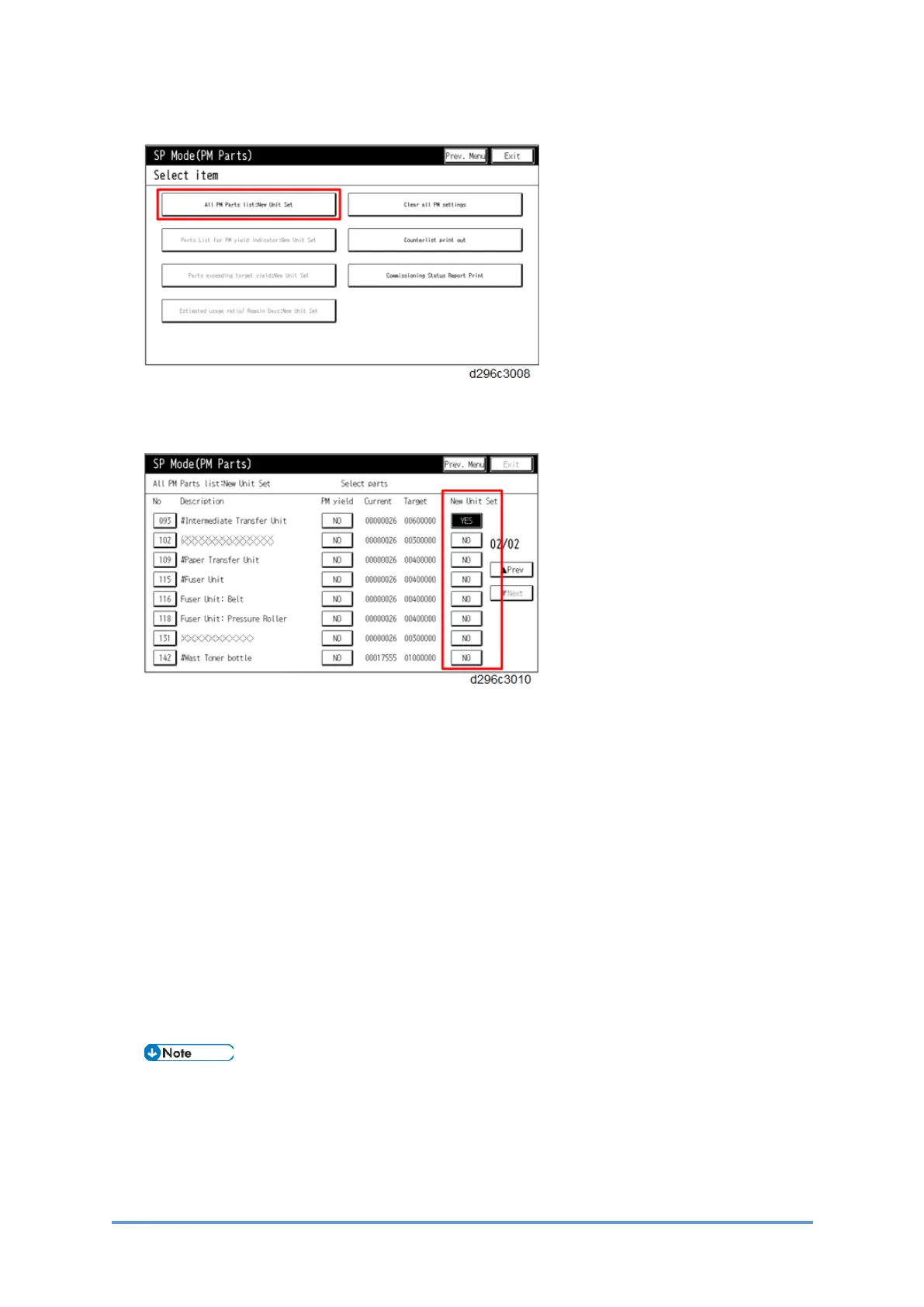 2. Make sure that the PM counters for the replaced units are "0" with SP7-621-002 to 208.