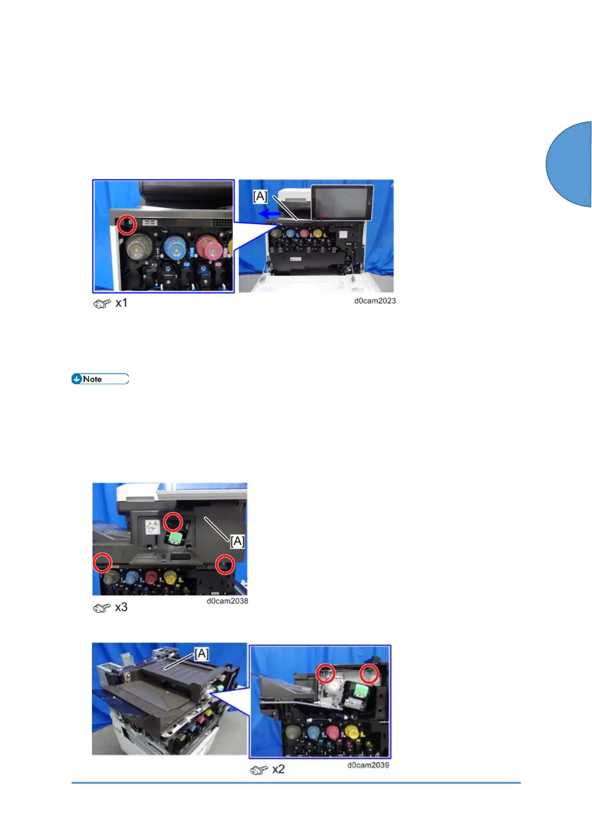 The following procedure for finisher model below includes steps to remove the paper exit front