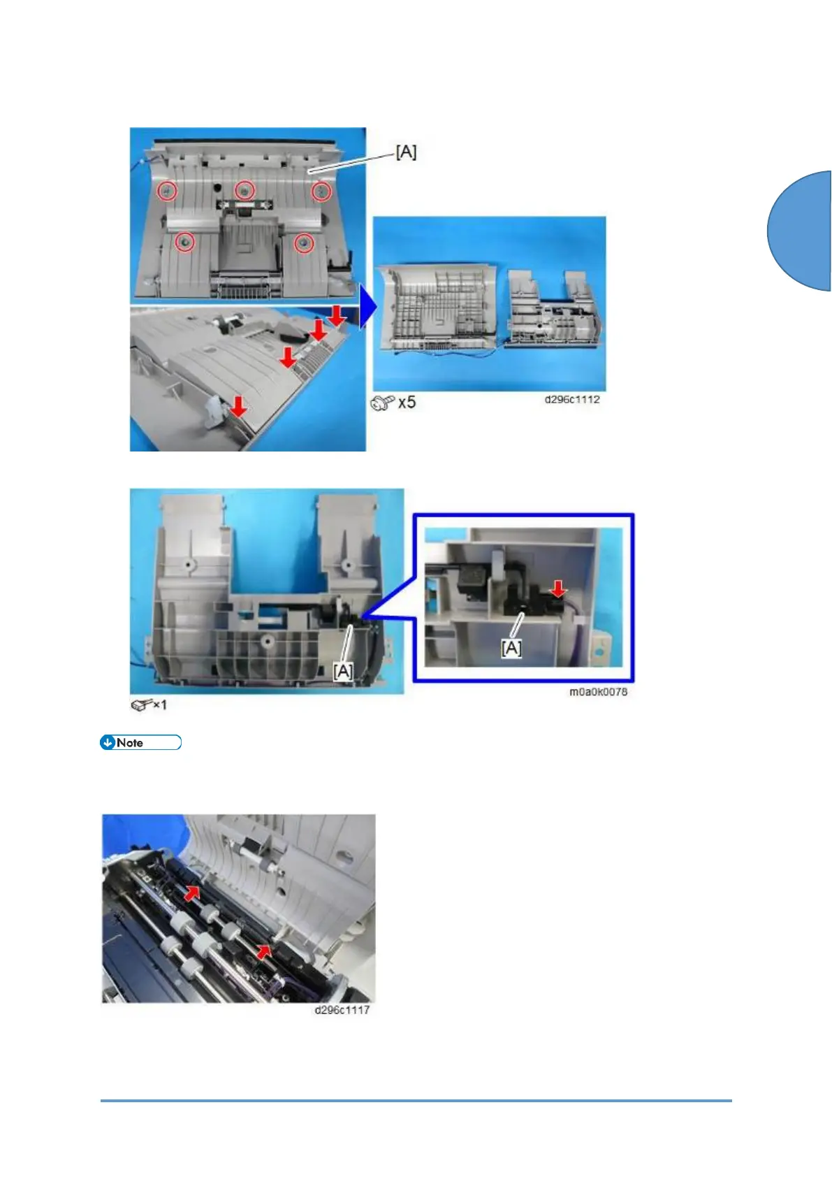 5. Remove the five screws and release the four tabs, and then remove the inner cover [A].