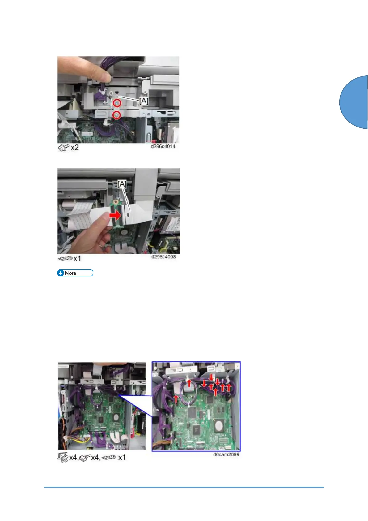 7. Remove the grounding plate [A].(This procedure is for IM C300 series/IM C400F)