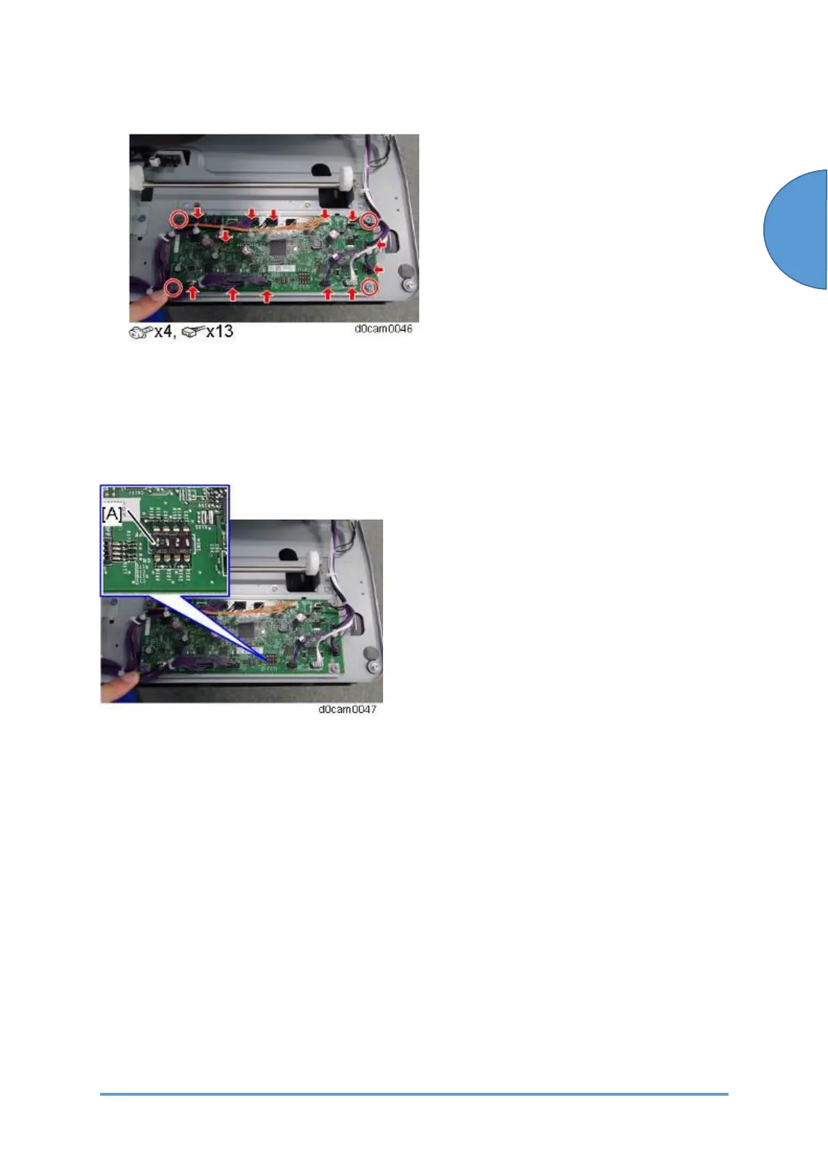 Check the DIP switch [A] on the old main board. If the settings on the new main board differ