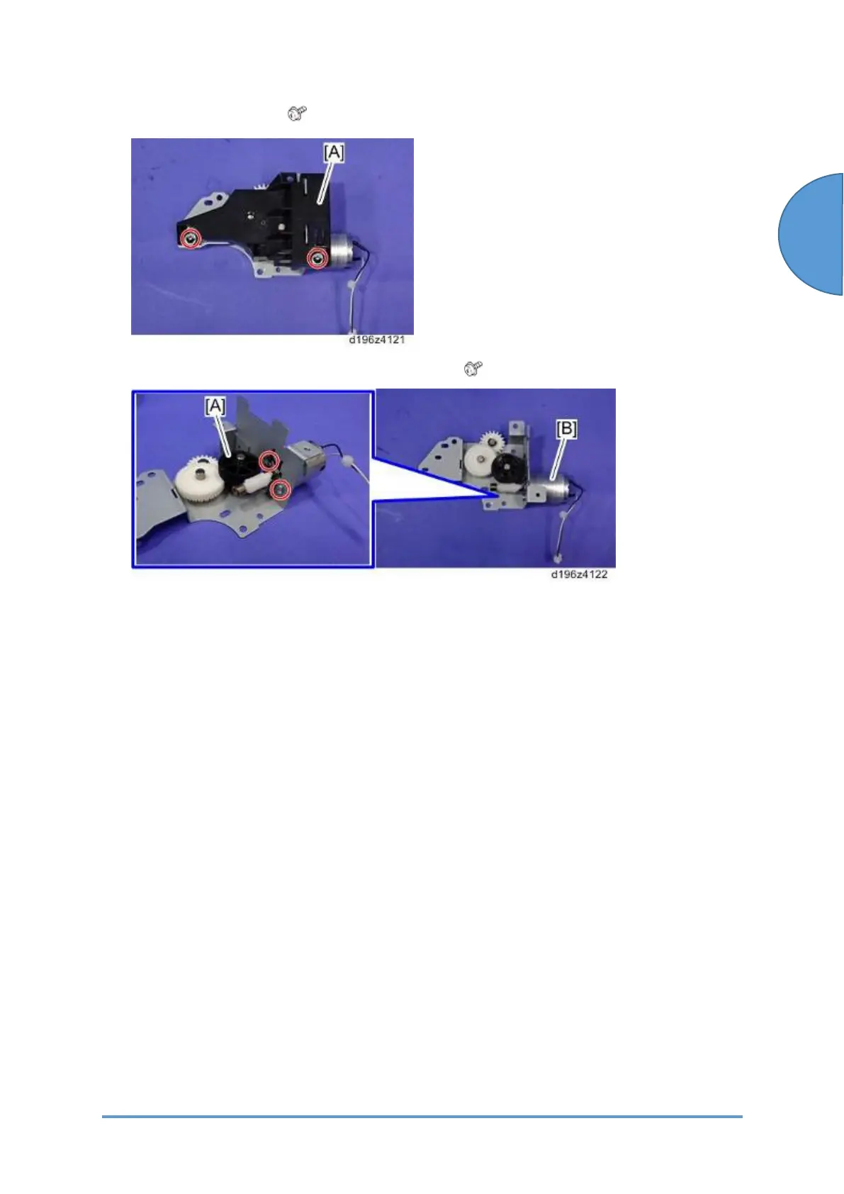 4. Remove the gear [A] and ITB lift motor (M14) [B]. ( × 2)
