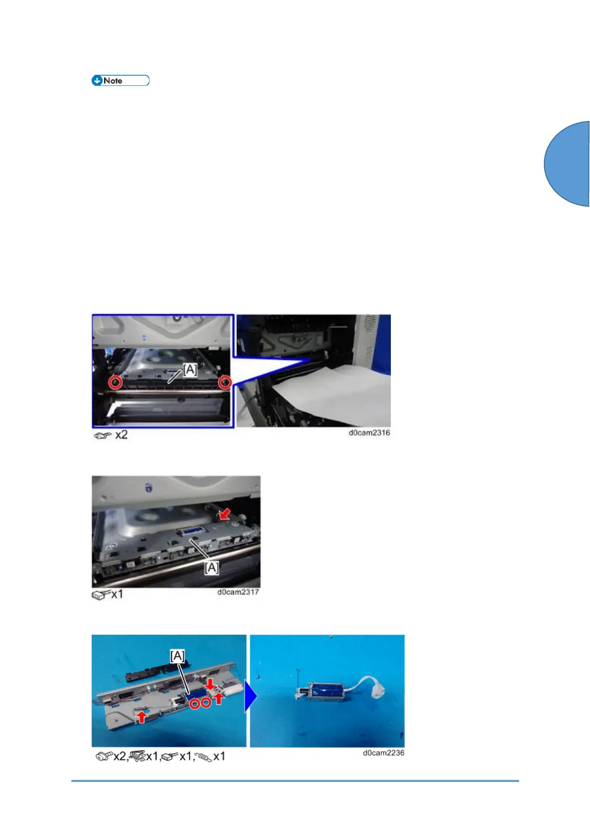 3. Remove the ID sensor (S27-S29) [A] with the bracket.