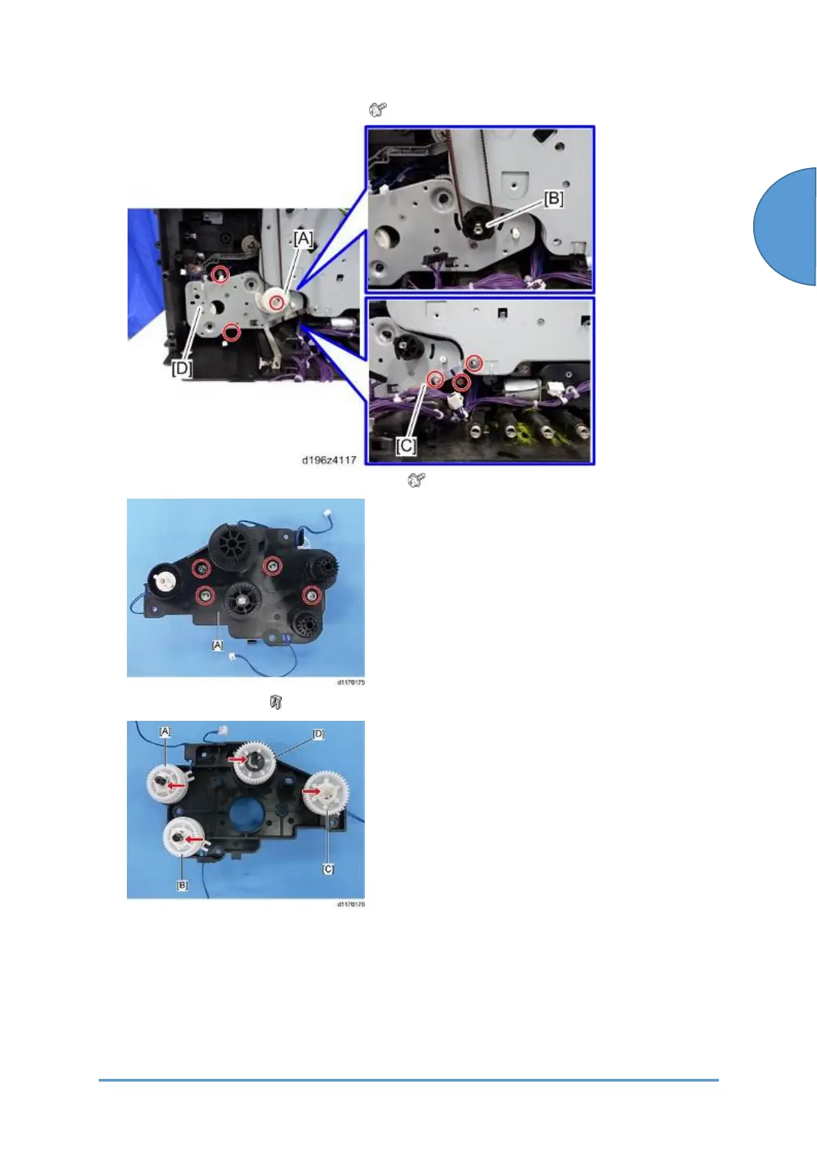 4. Remove the paper transport unit cover [A]. ( × 4)