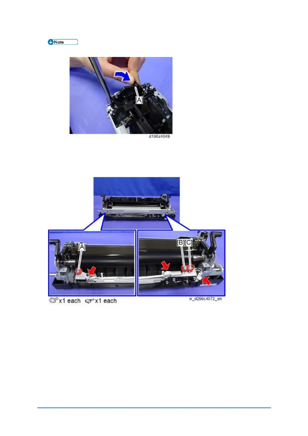 4. Remove the pressure roller thermistors [A], [B] or [C].