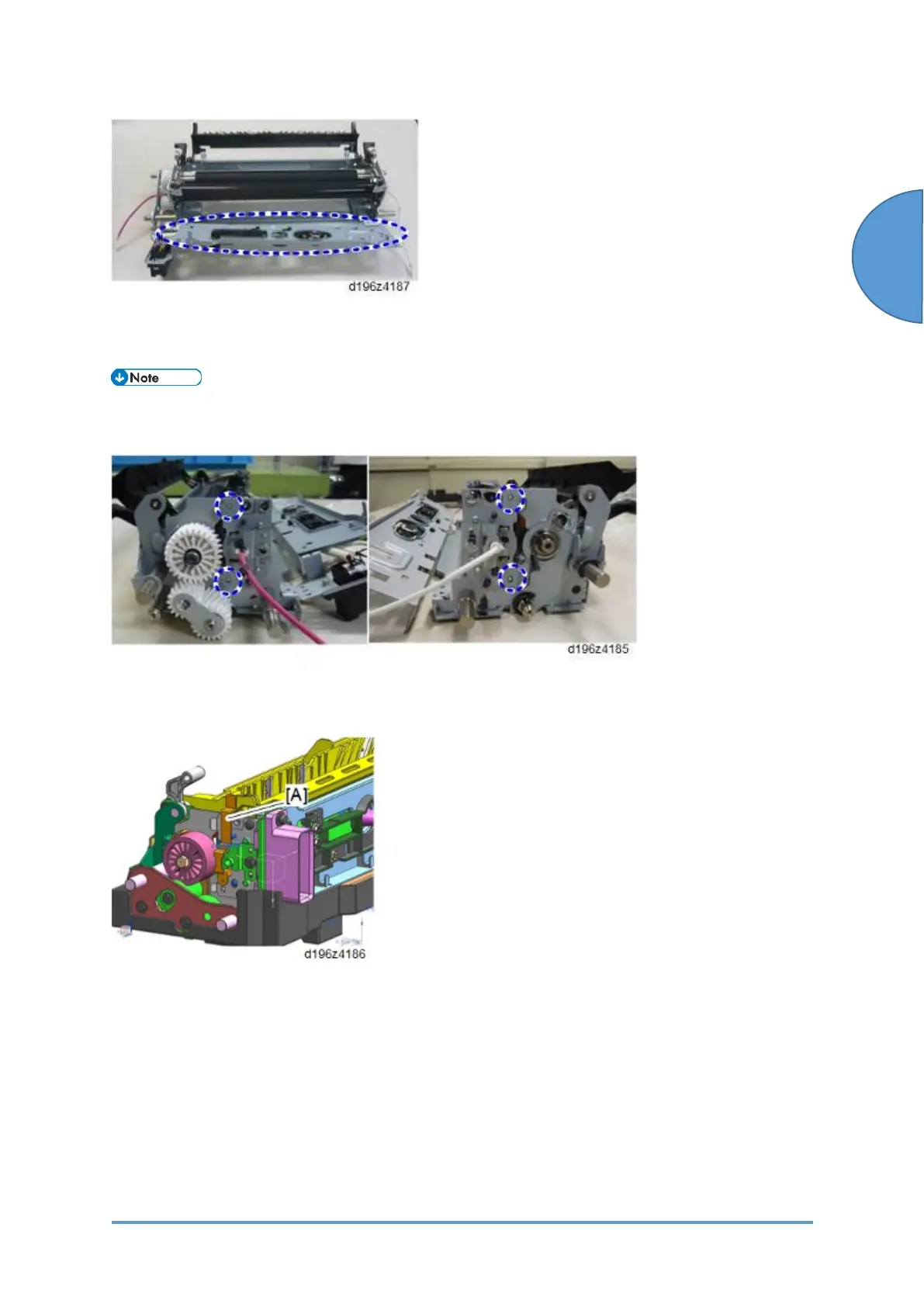 The new fusing sleeve belt assembly has a jig [A] that must be removed. Set the fusing sleeve
