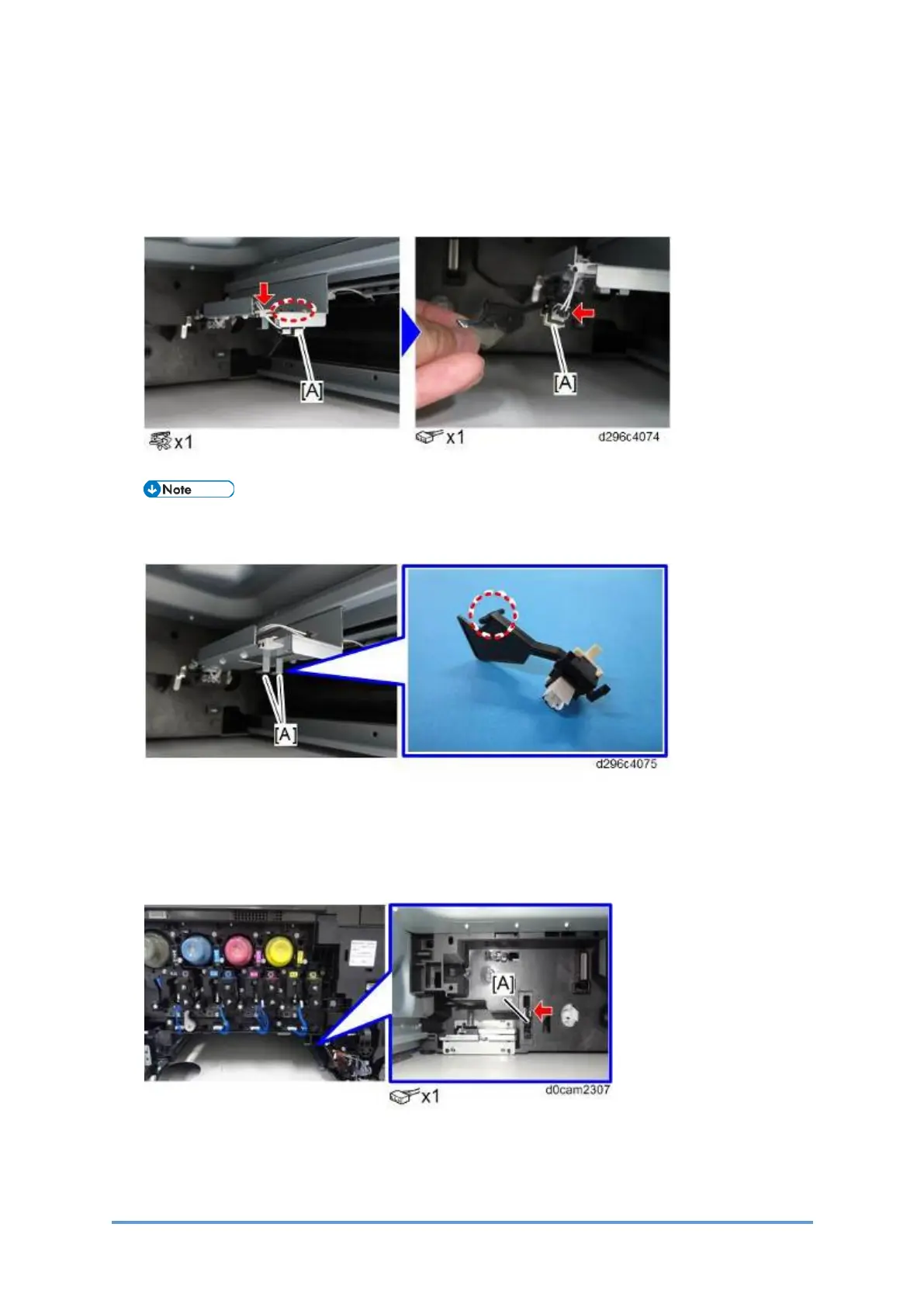 2. Remove the tray lift sensor (S35) [A]. (hook × 2)