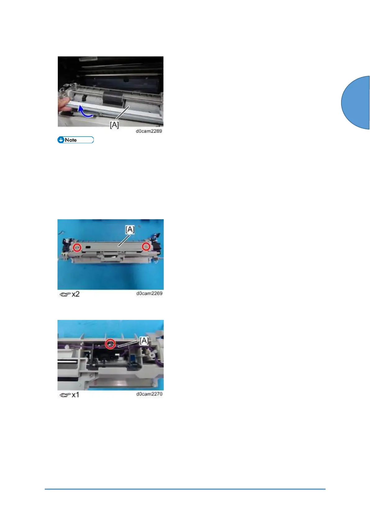 4. Remove the paper end sensor (bypass) (S6) with the holder [A].