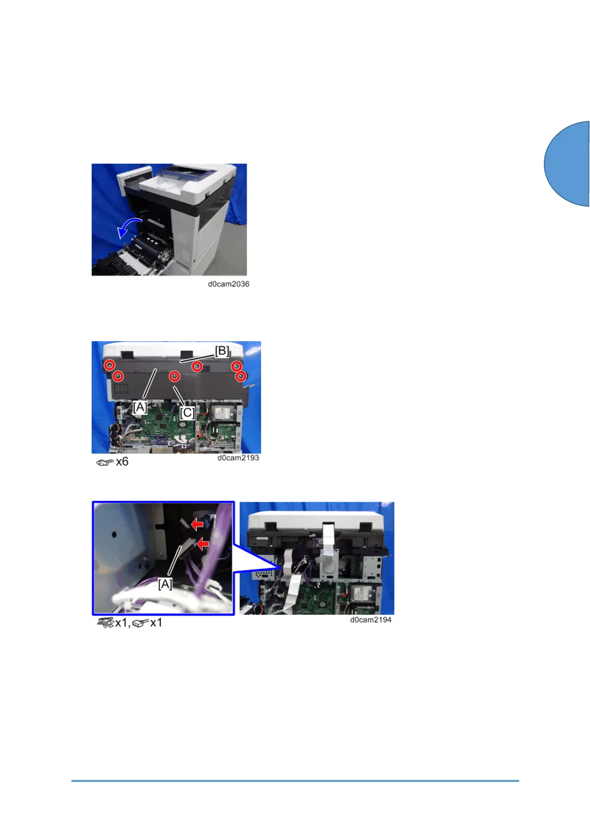 2. Remove the scanner rear cover [A],scanner rear small cover [B] and the rear upper cover