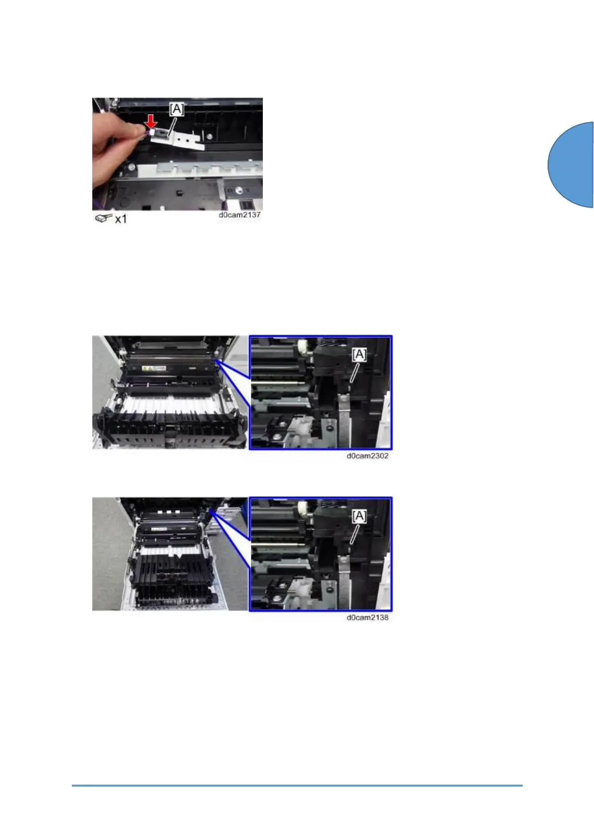 2. Release the tab of the right cover sensor (SW2) [A] with a jeweler’s screwdriver.