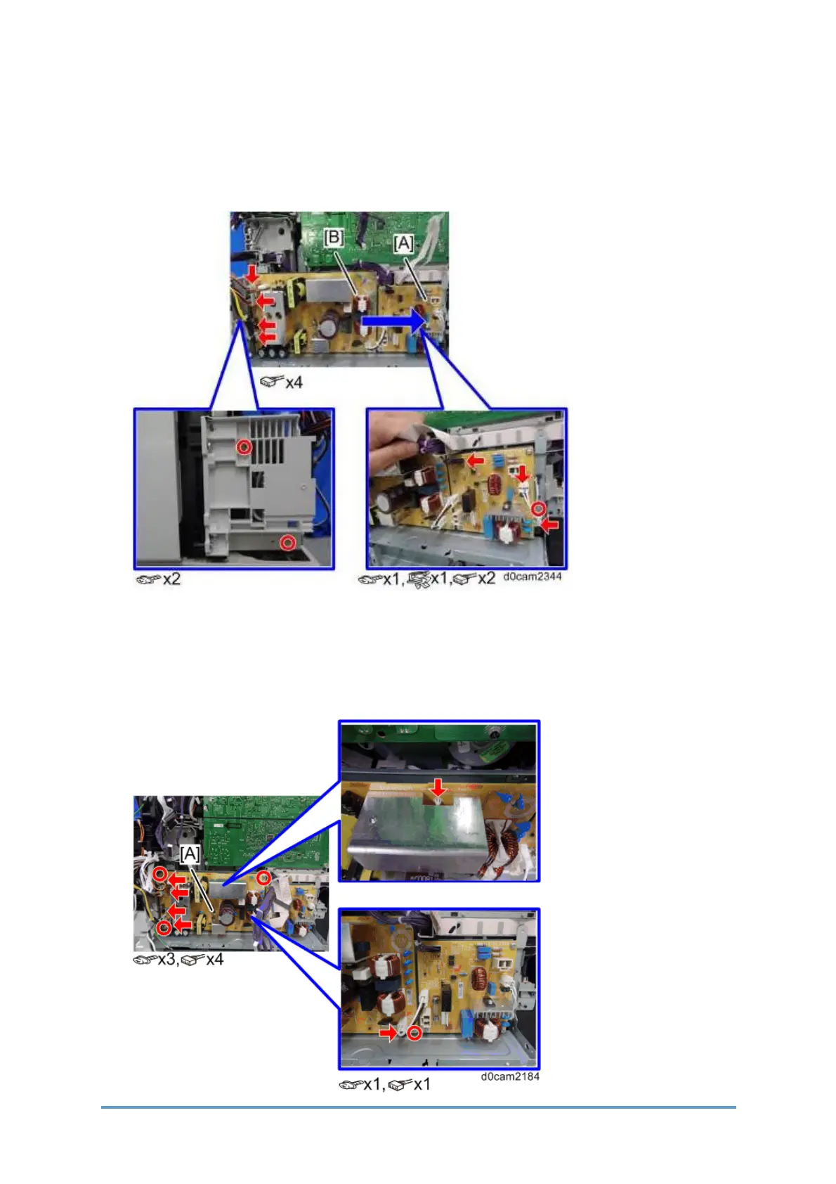 2. Disconnect the connectors on the PSU (AC) (PCB17) [A] and PSU (DC) (PCB16) [B].