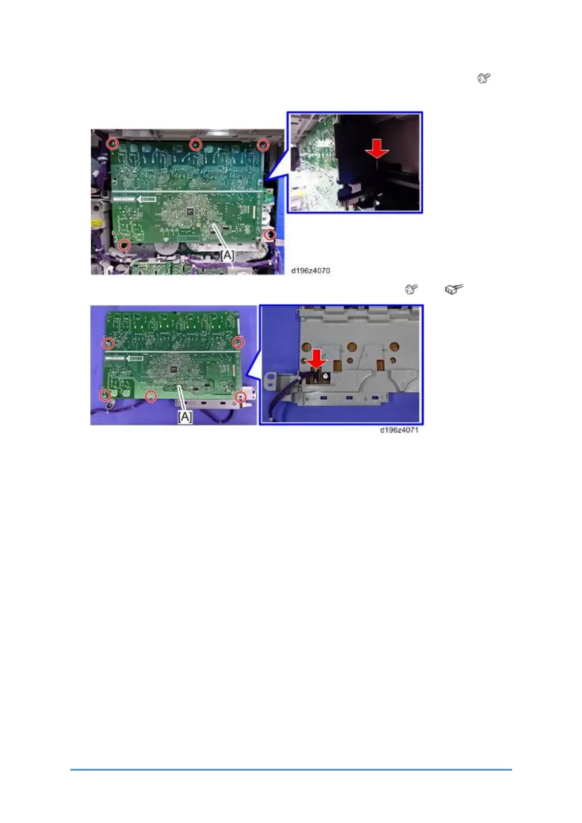 4. Remove the high-voltage power supply (Development) (PCB22) [A]. ( × 5, × 1)