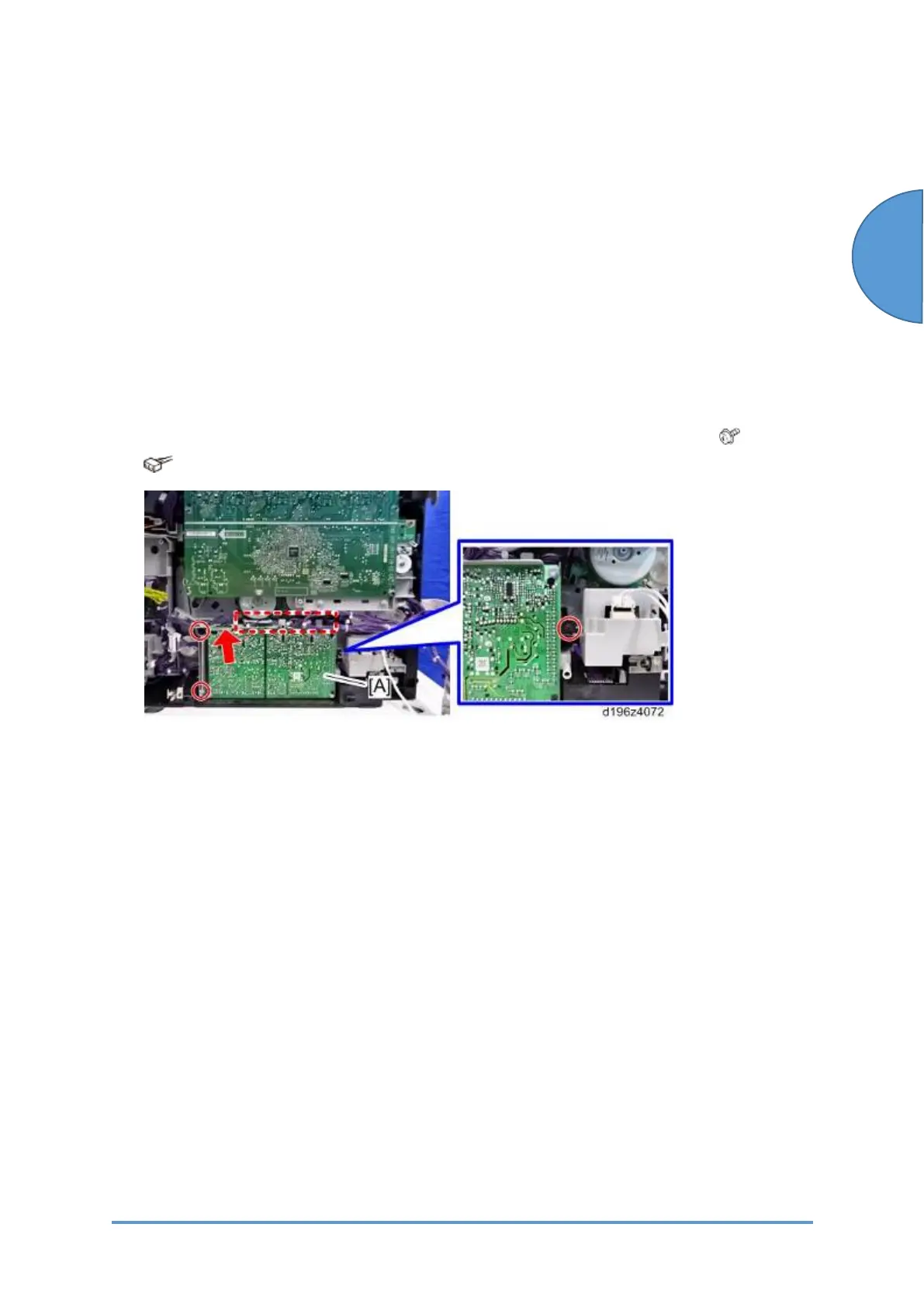 remove the high-voltage power supply (Transfer) (PCB23) [A] with the bracket. (