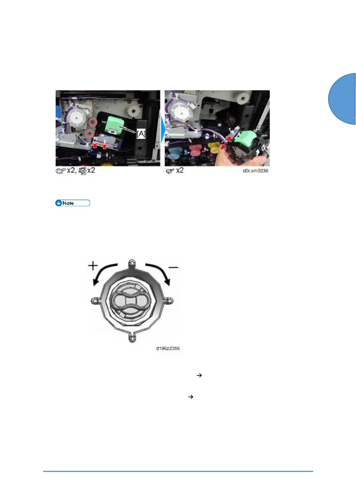3. Rotate the knob(s) shown in the photo [A] to [D] at 90 degree intervals until the SP value for
