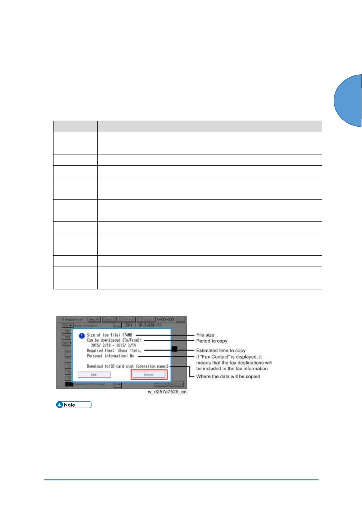SP5-858-131 Fax information (whether the fax destinations are included or not depends on