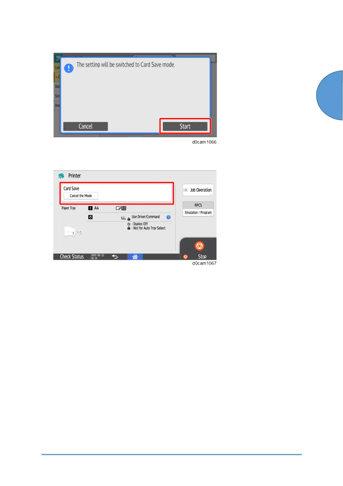 17. Press [Cancel the Mode] to exit Card Save mode.