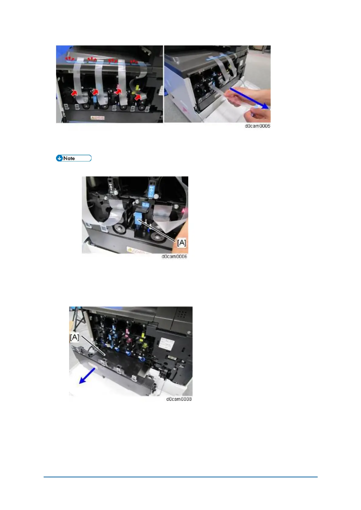 2. Open the front cover again, and then remove the waste toner bottle [A].