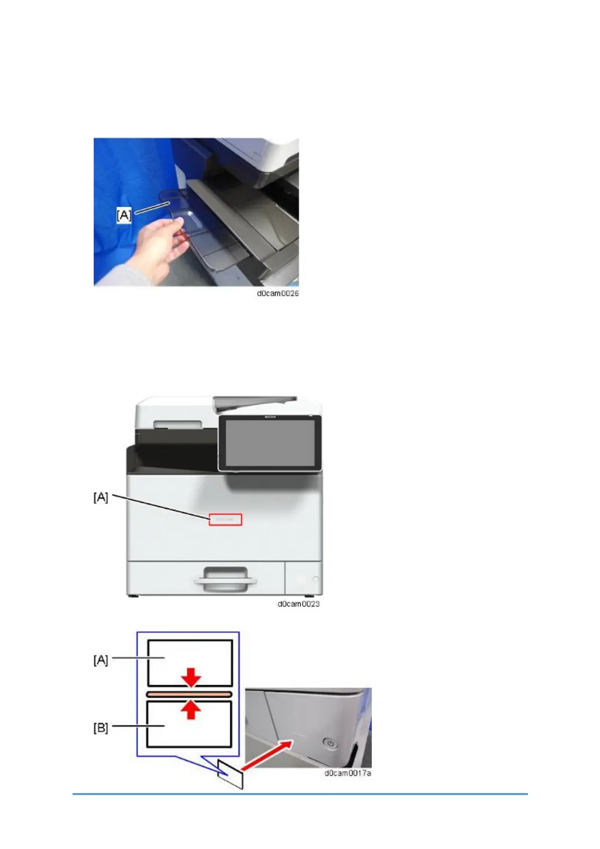 1. Install the extension tray [A] in the finisher.
