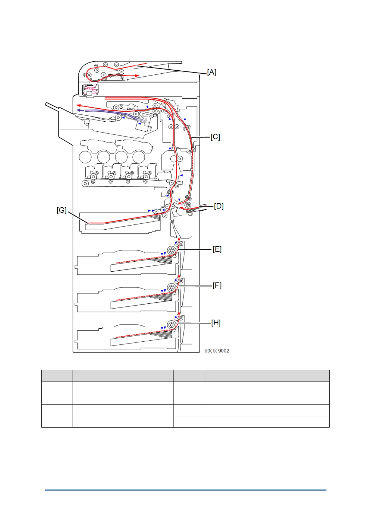 [A] ADF transport path [E] Optional paper feed unit path (1st)