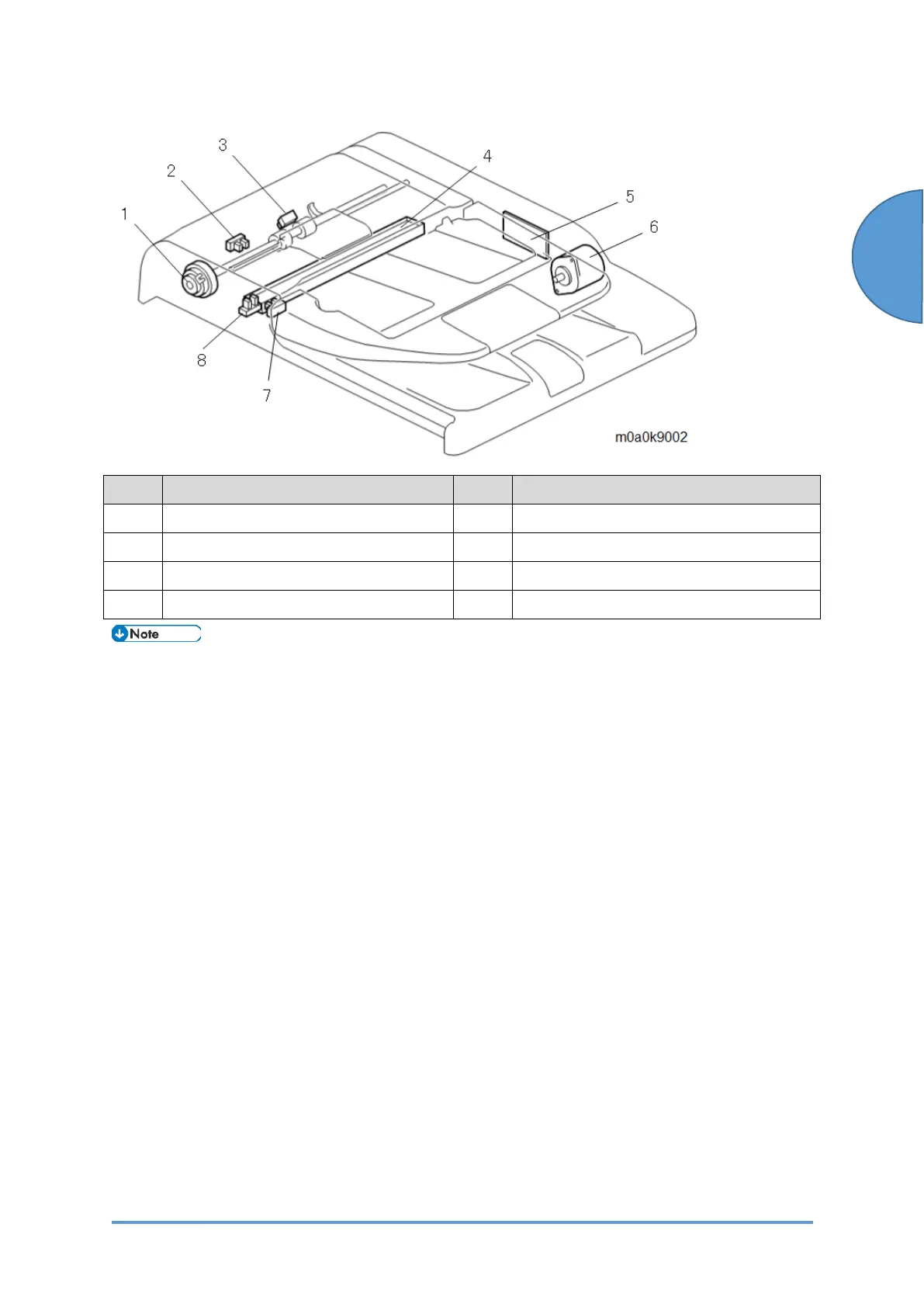 2 Original feed sensor (S25) 6 ADF motor (M8)