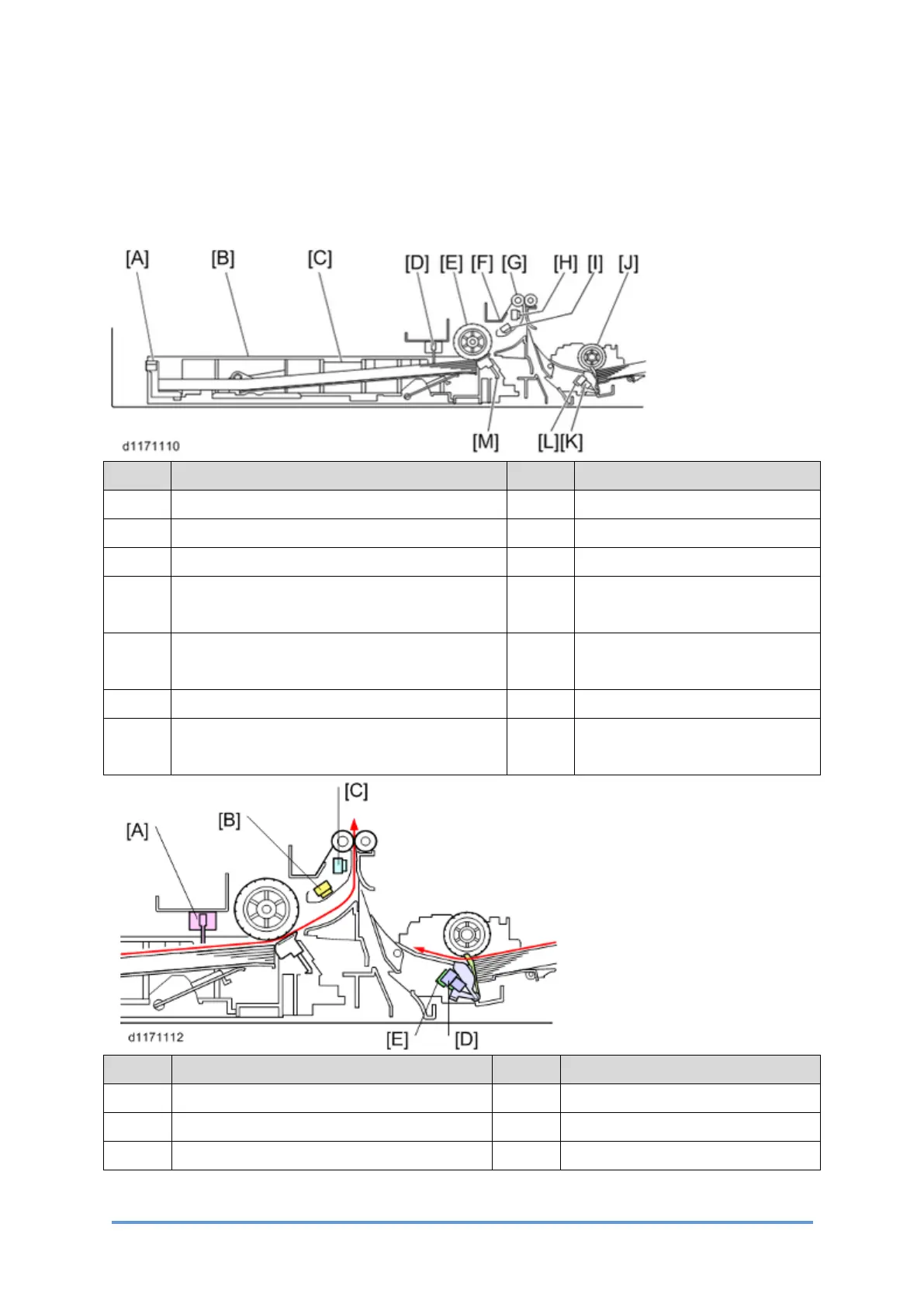 [A] Tray Paper End Sensor (Main Unit) (S30) [D] Bypass Paper Width Sensor (S5)