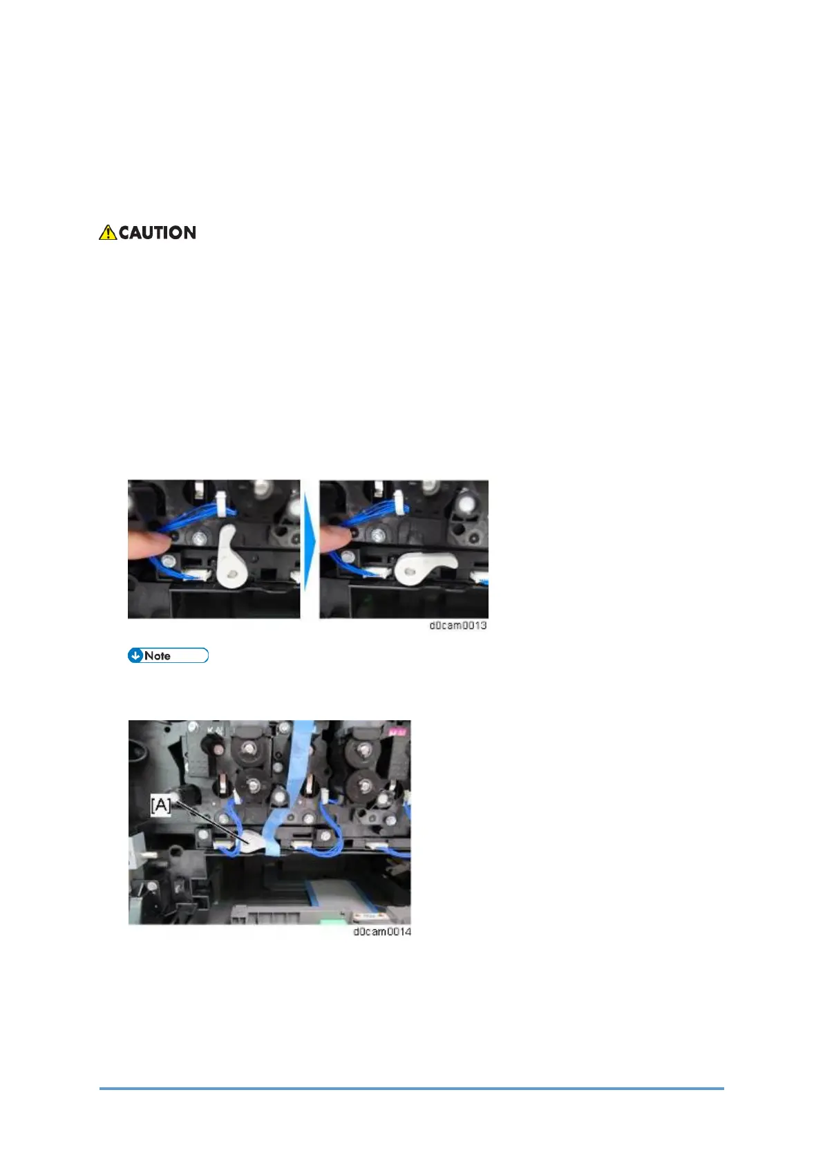 1. Remove the paper tray and waste toner bottle, and then move the ITB contact lever down