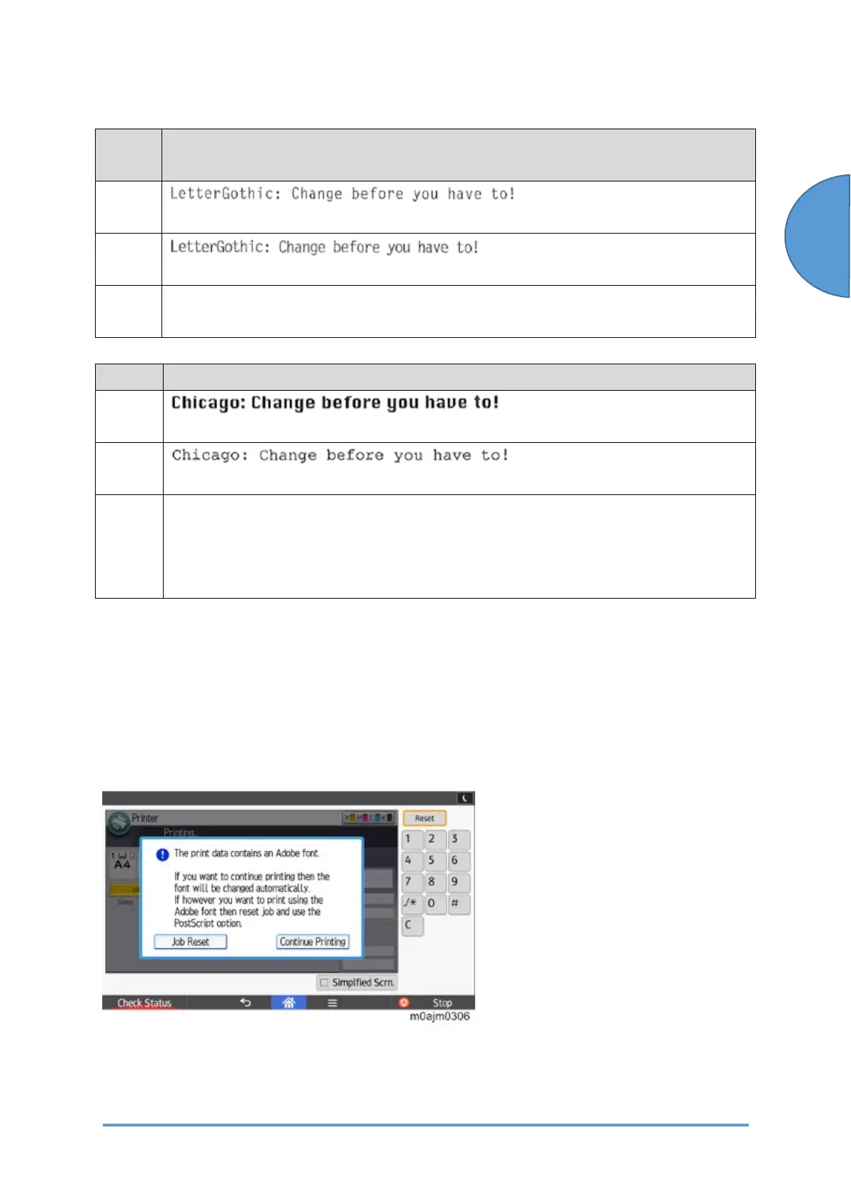 cope with this issue, the operation panel shows a confirmation screen whenever an Adobe font