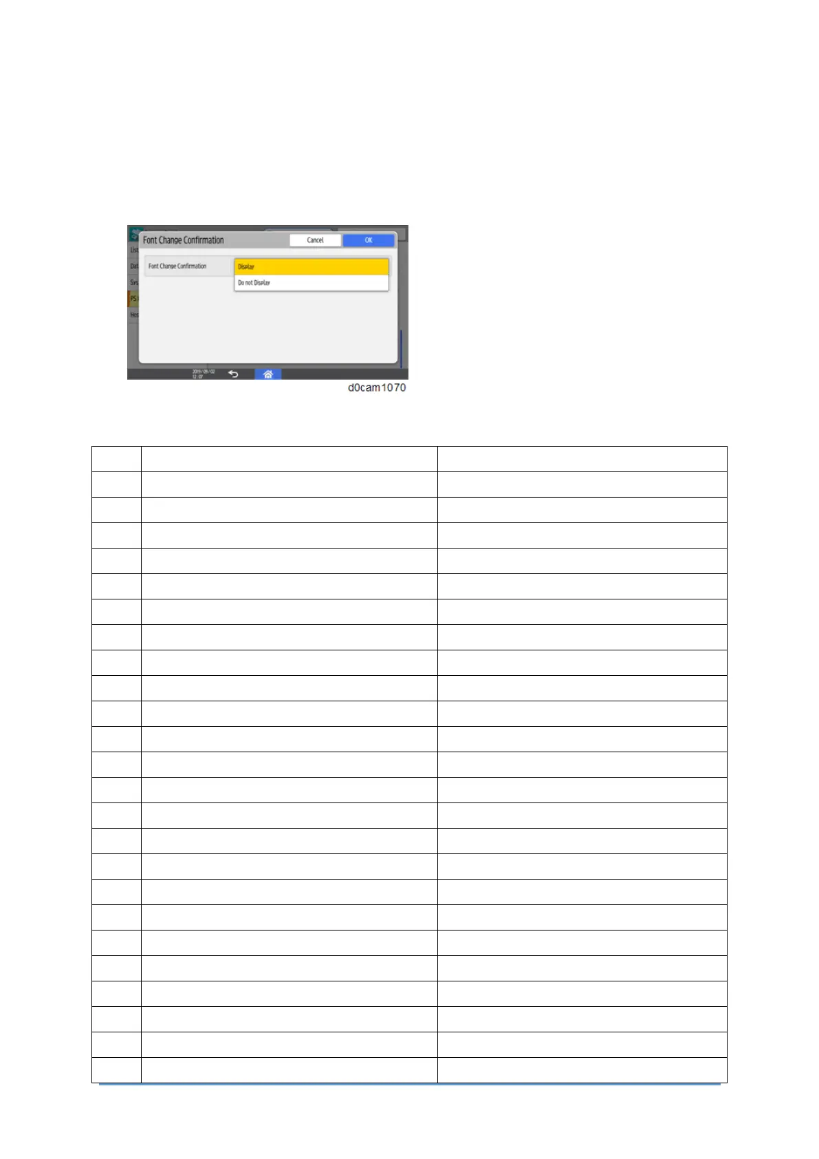 • "Settings" icon on Home screen > Printer Settings > PS Menu > Font Change Confirmation