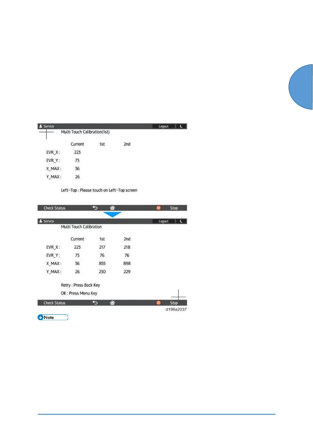 bottom right. Repeat the procedure. The touch panel will be calibrated.