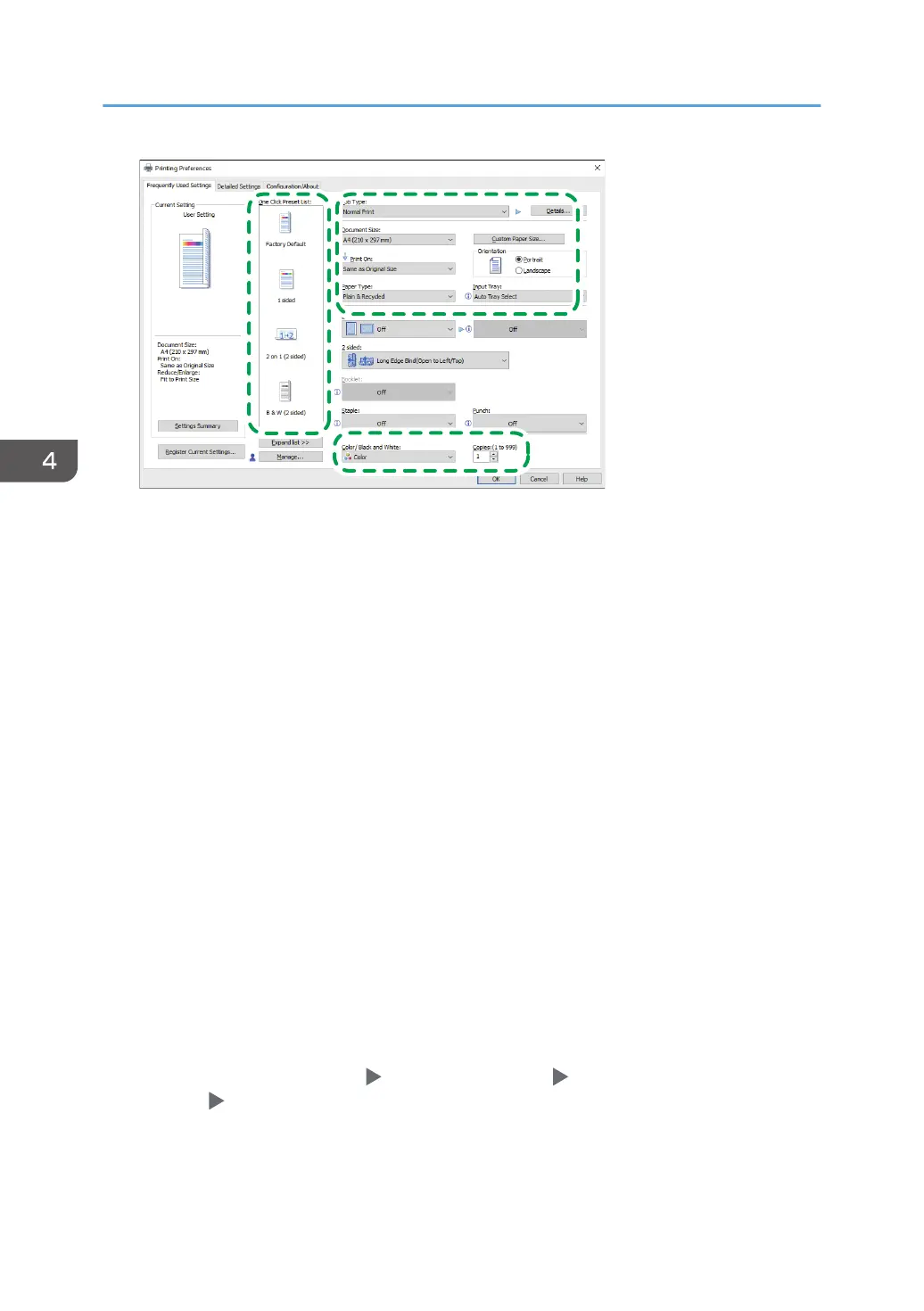 Click the icon of the function to select. You can register frequently used print settings in One-