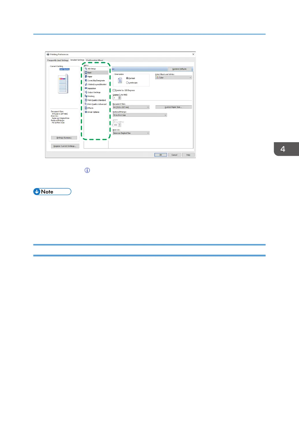 • When you use the driver distributed from the print server, [Standard settings] specified in the print