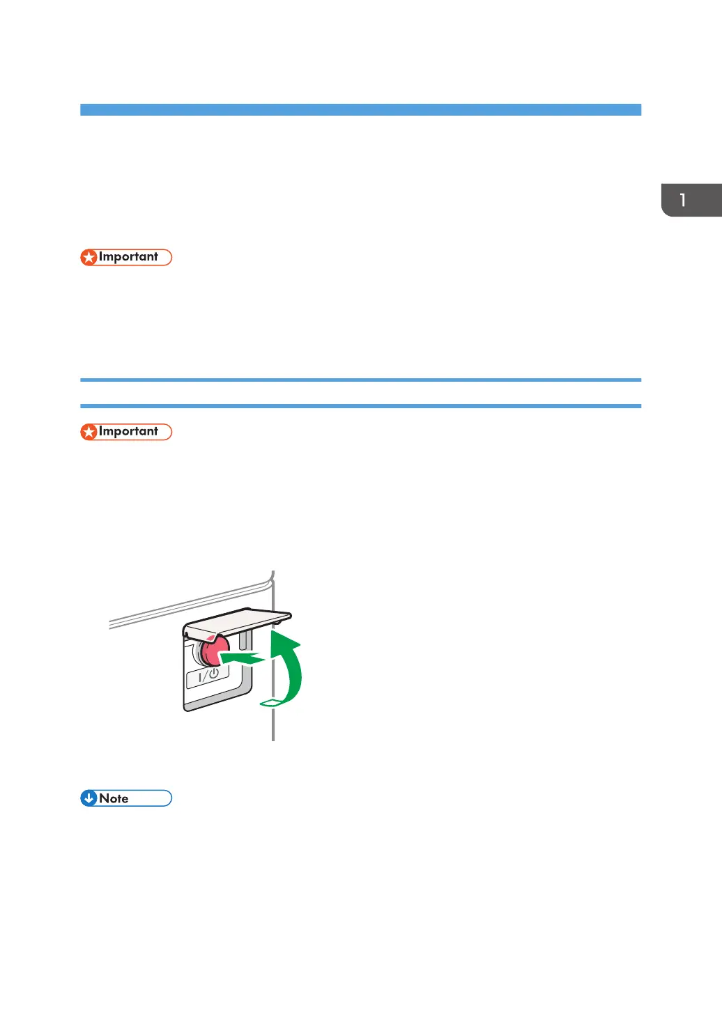 2. Open the cover of the main power switch, and push the main power switch.