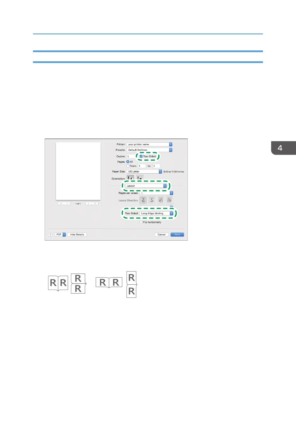 3. Select the [Two-Sided] check box, and then select [Layout] to specify the binding side and