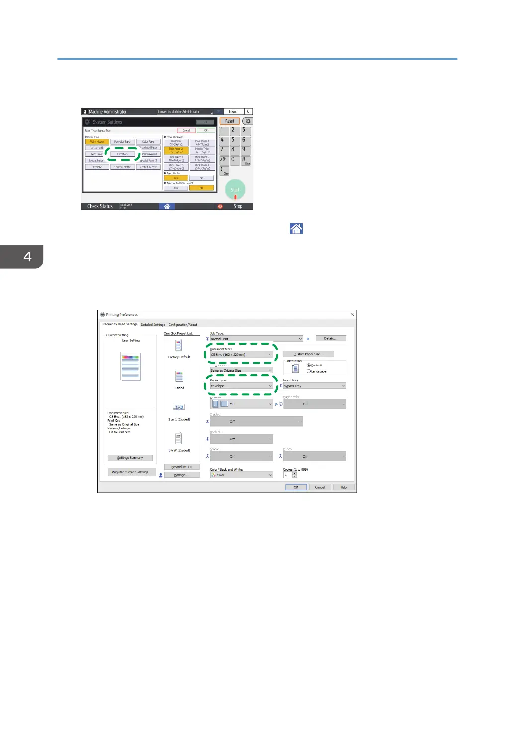 • Document Size: Select the envelope size. If the envelope size is not included among the