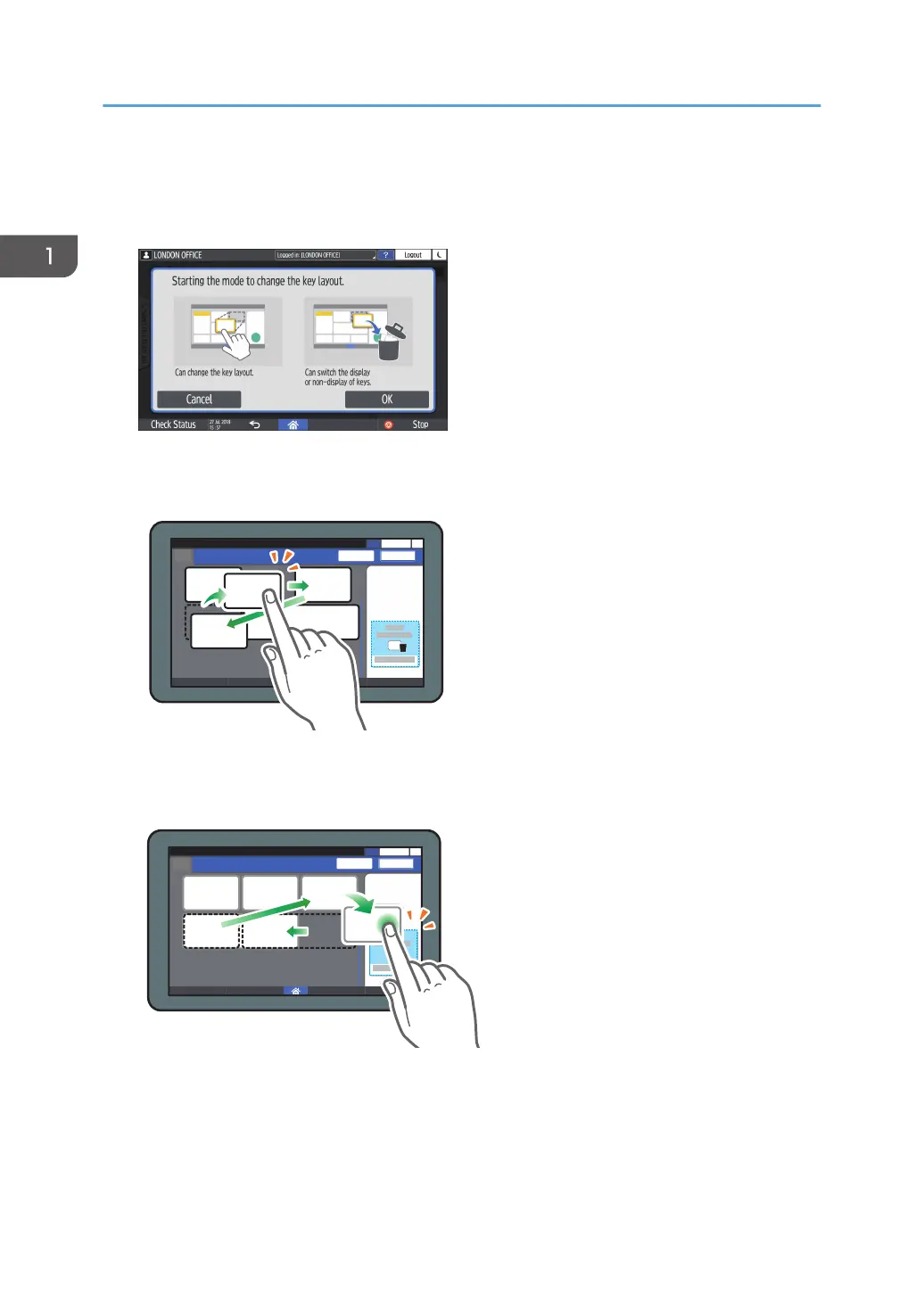 Long-press a key to change the layout, drag it to a new location, and then press [OK].