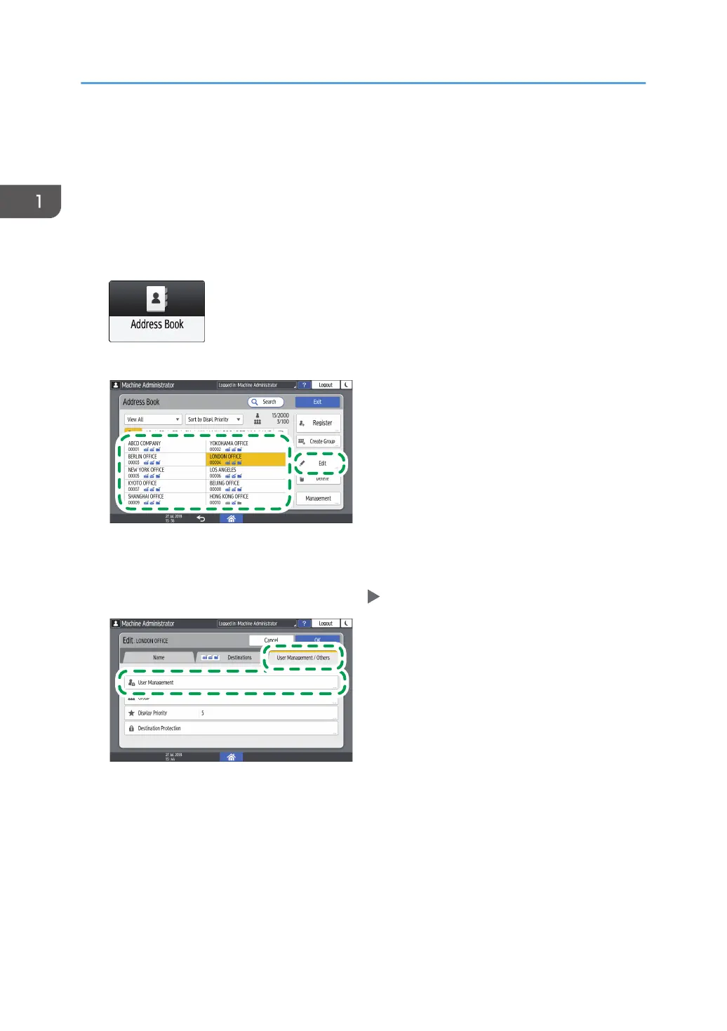 3. Select the login user from the address book, and then press [Edit].
