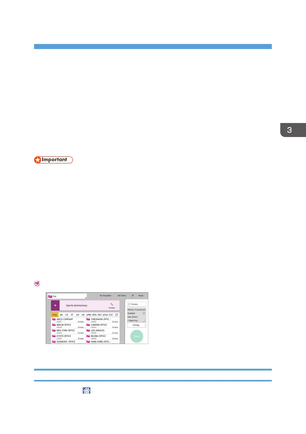 You can specify the fax, IP-Fax, Internet Fax, e-mail, or folder destinations. Multiple types of destination