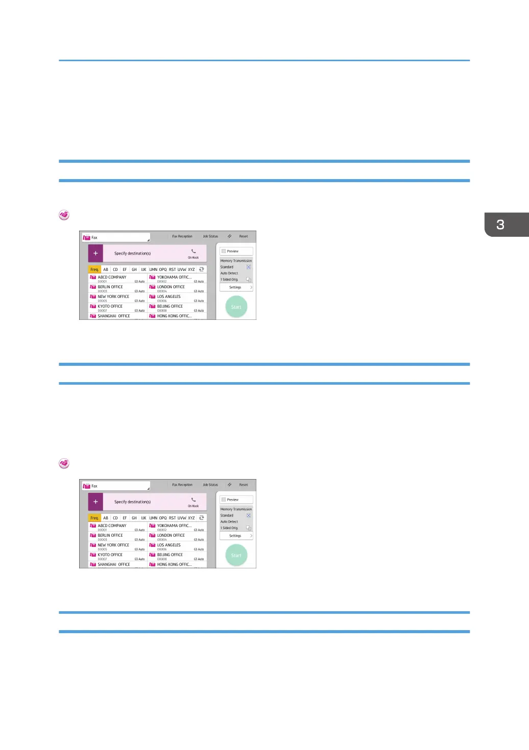 About how to use the application's screen, see page 76 "[Fax] (standard) Screen".