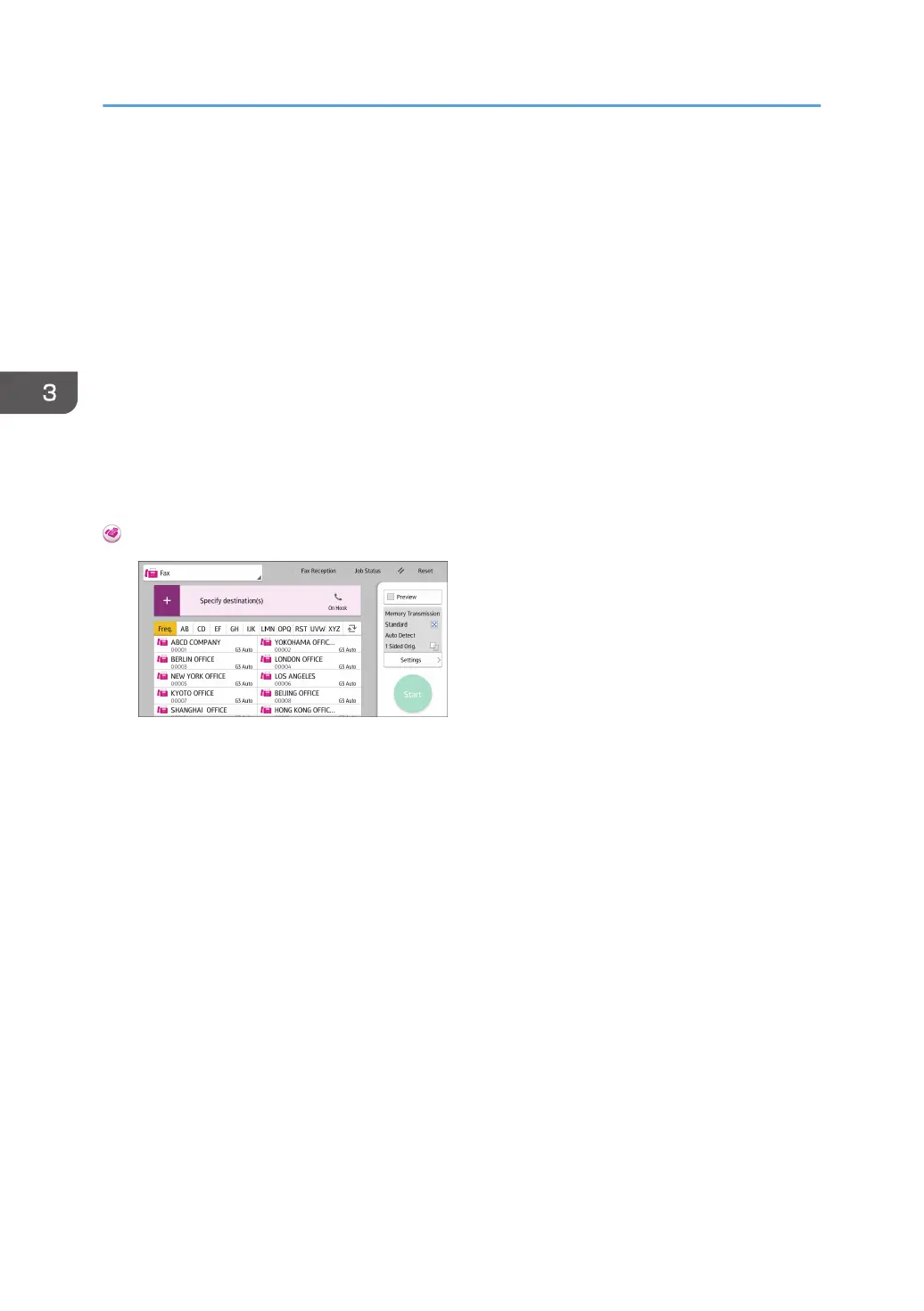 About how to use the application's screen, see page 76 "[Fax] (standard) Screen".