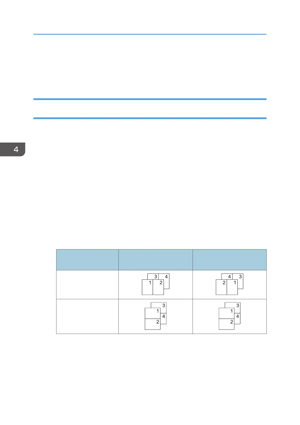 The following illustrations show example page ordering patterns for 2- and 4-page combinations.