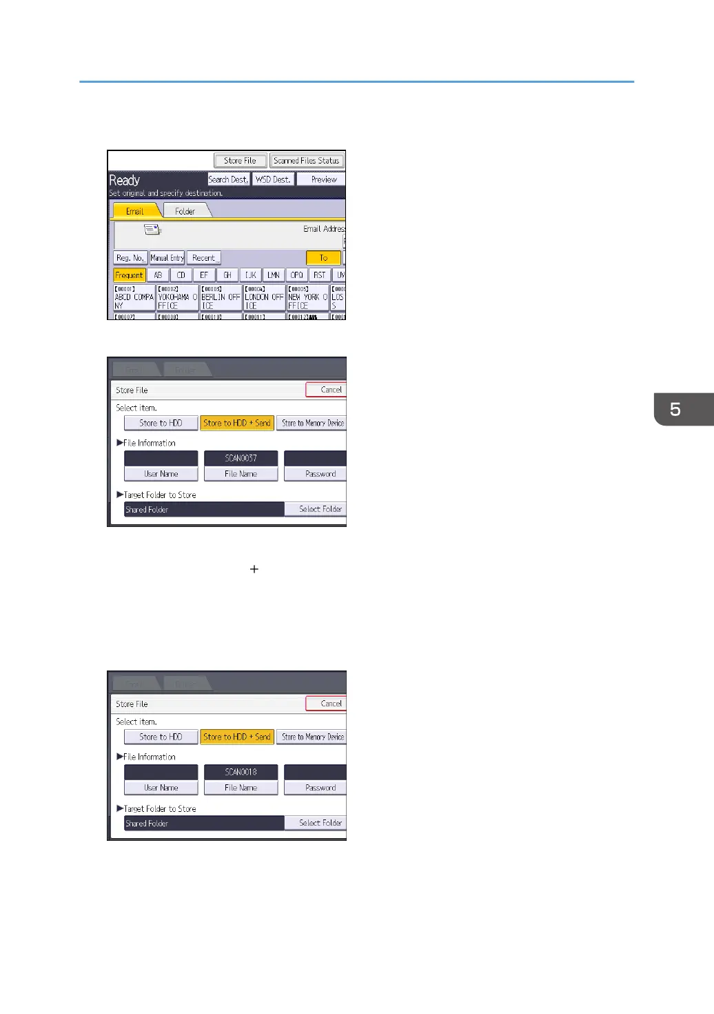 By pressing [Store to HDD Send], you can simultaneously store scan files and send them. For