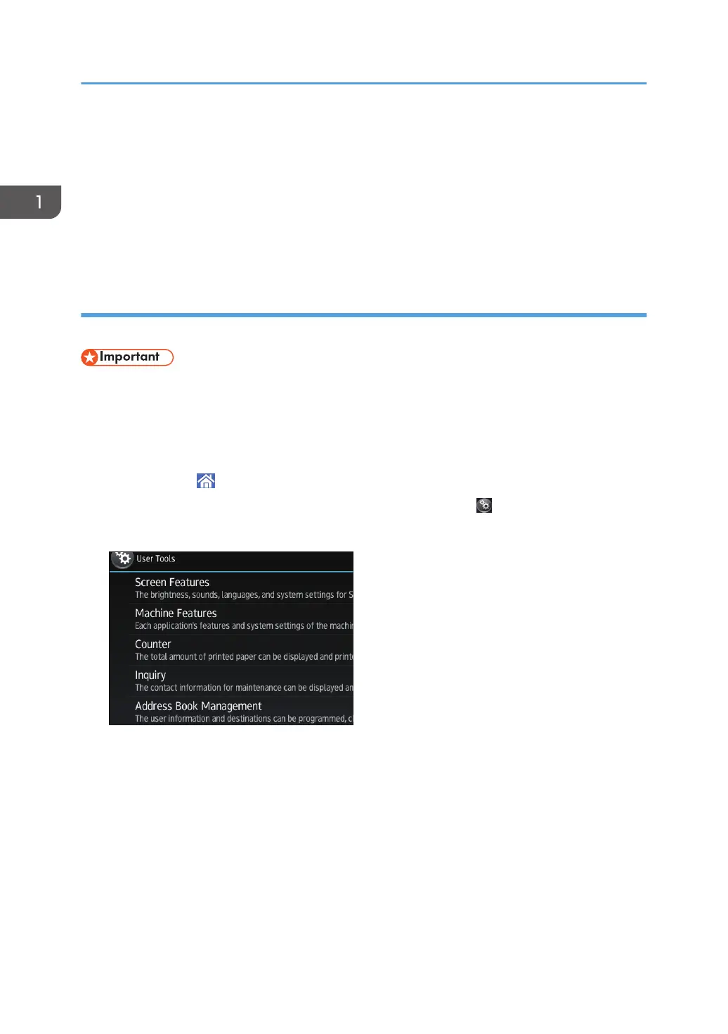 2. Flick the screen to the left, and then press the User Tools icon ( ).