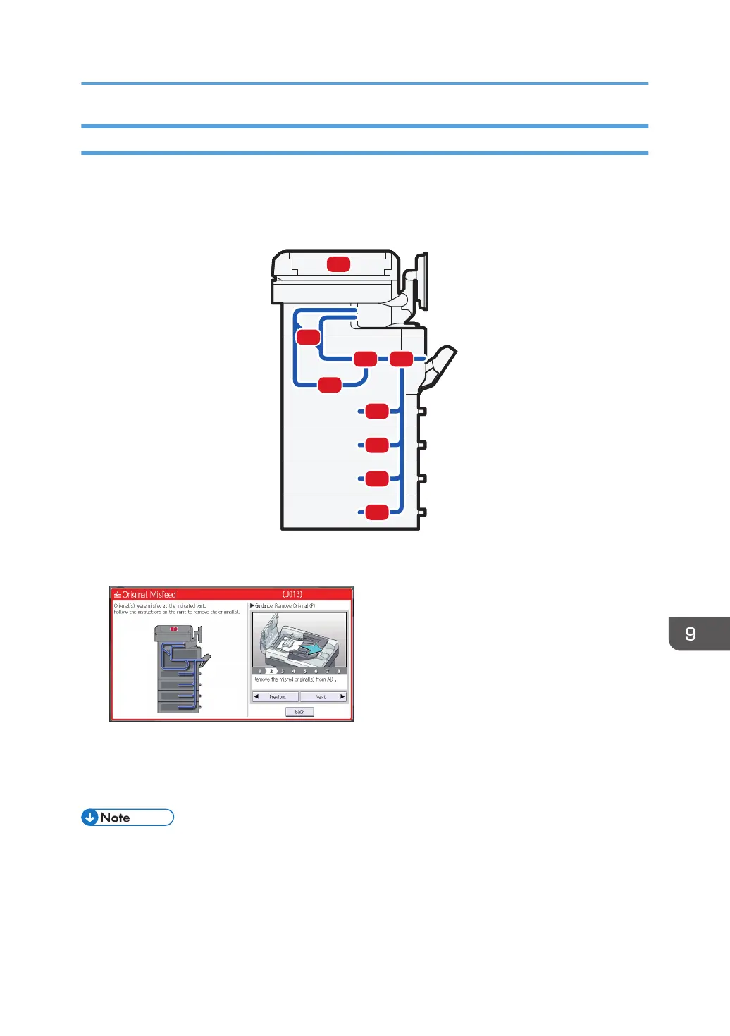 • Multiple paper misfeed locations may be indicated at the same time. When this happens, check all