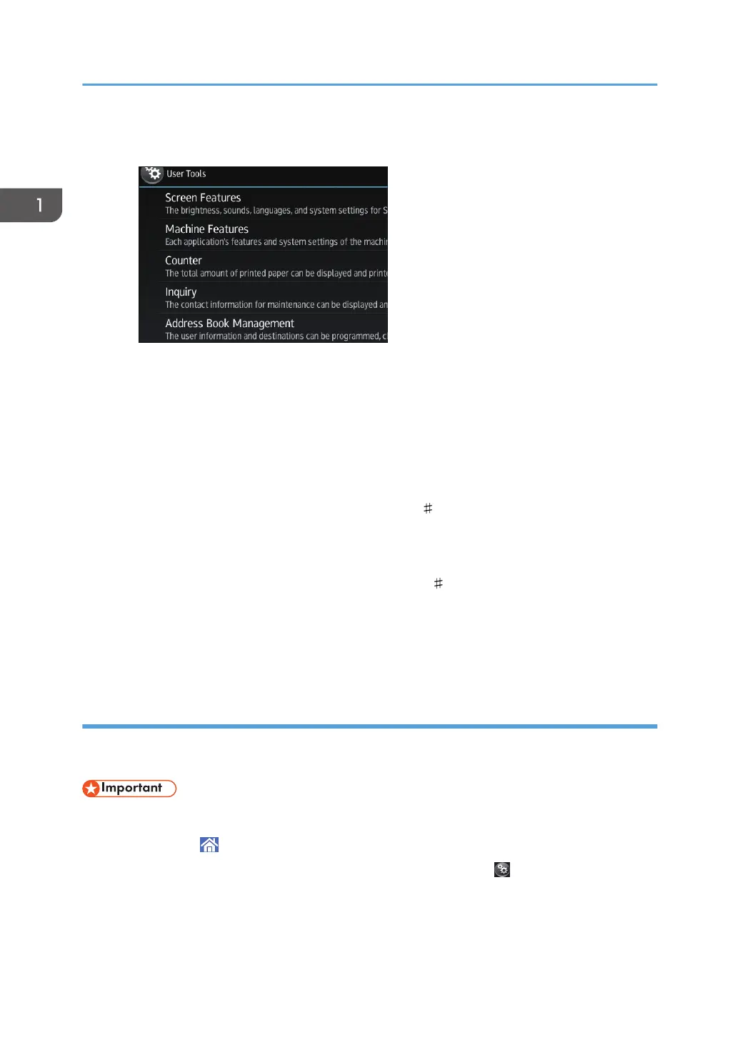 2. Flick the screen to the left, and then press the [User Tools] icon ( ).