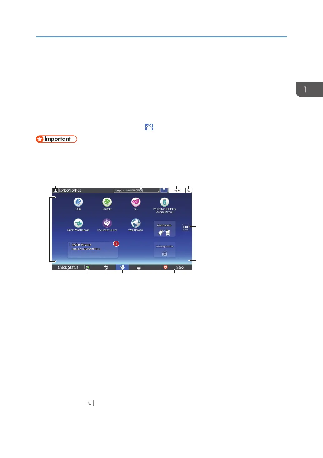 screen appears. If you have been already logged in to the machine, [Logout] appears. To log out of the