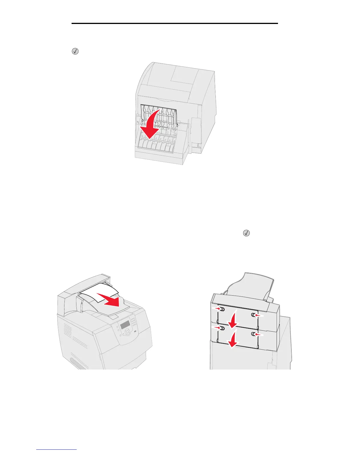1 If the paper is exiting into the bin or finisher, pull the media straight out, and press . Otherwise, continue with