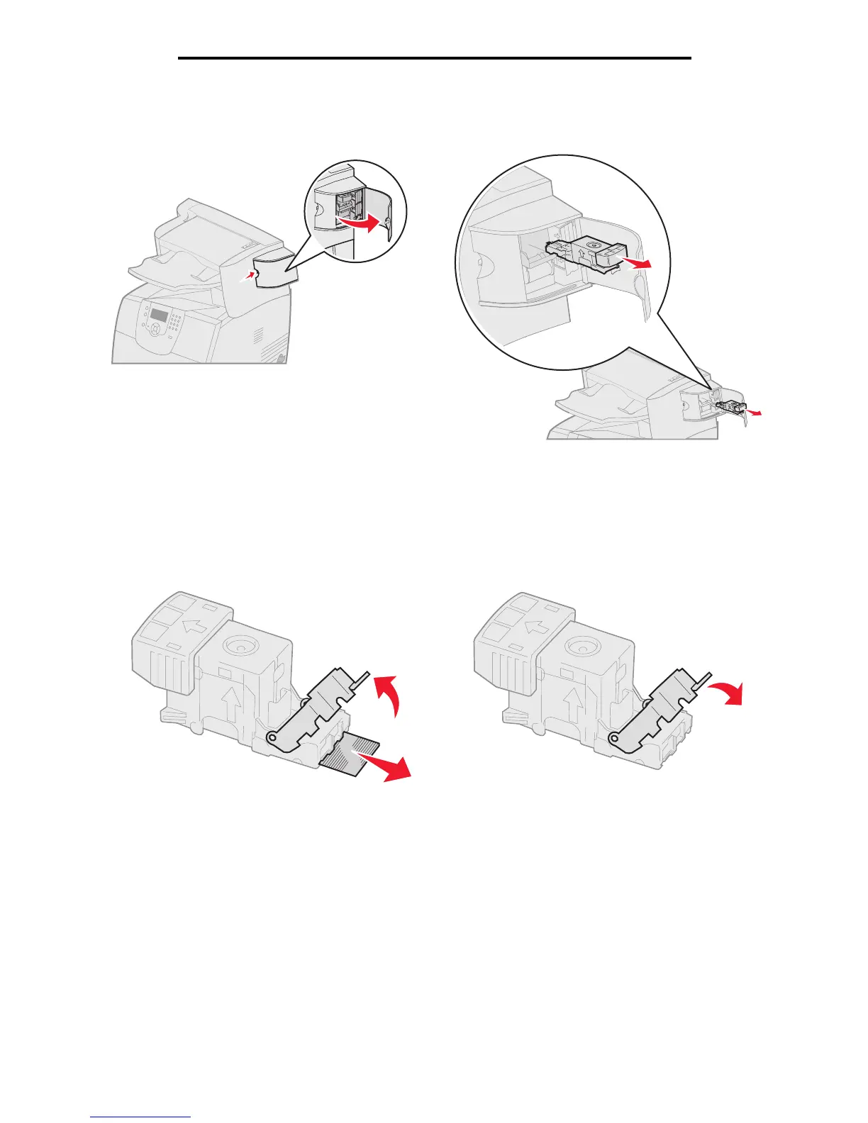 7 Look through the clear covering on the bottom of the cartridge holder to make sure no staples are jammed in the