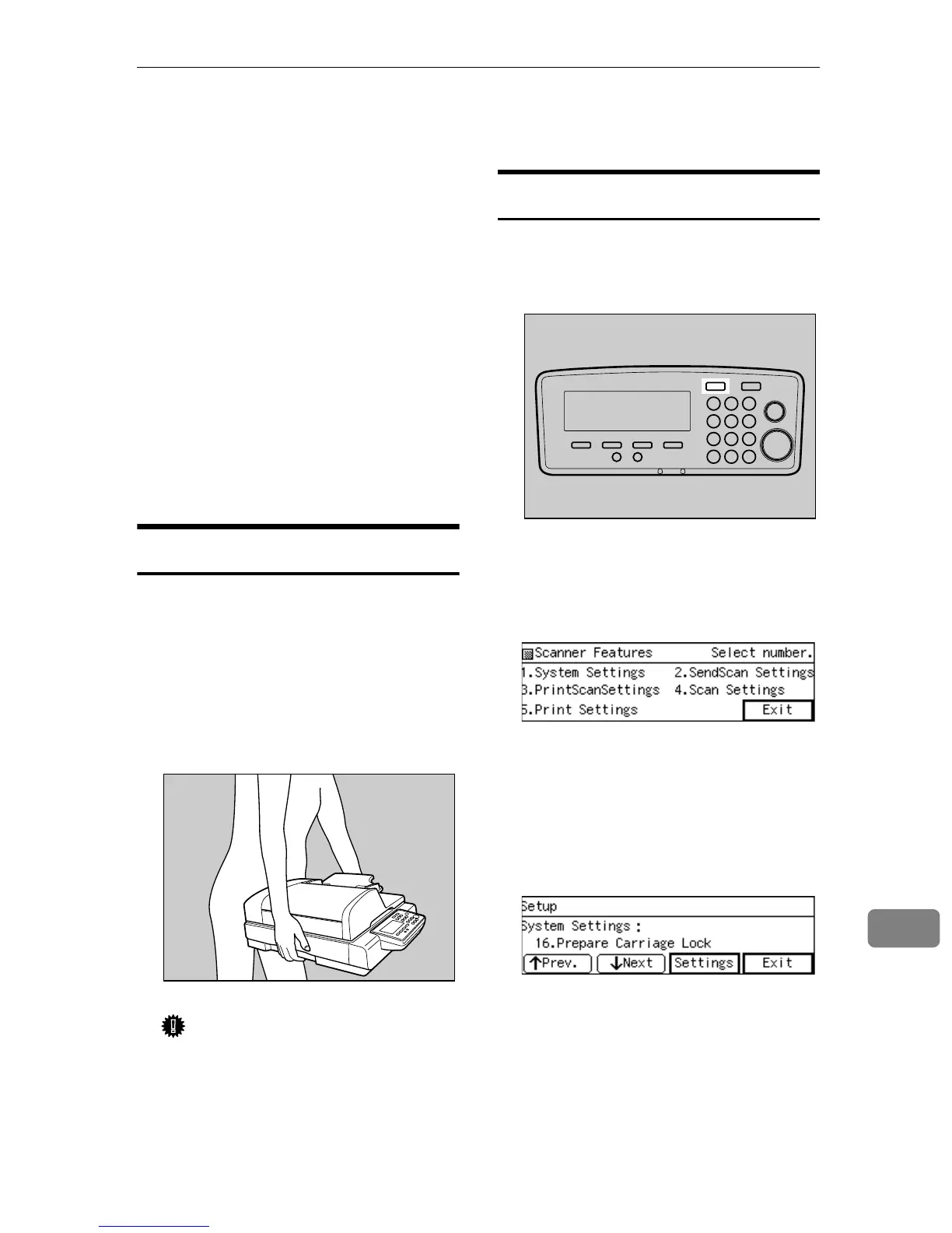 “Prepare Carriage Lock” screen