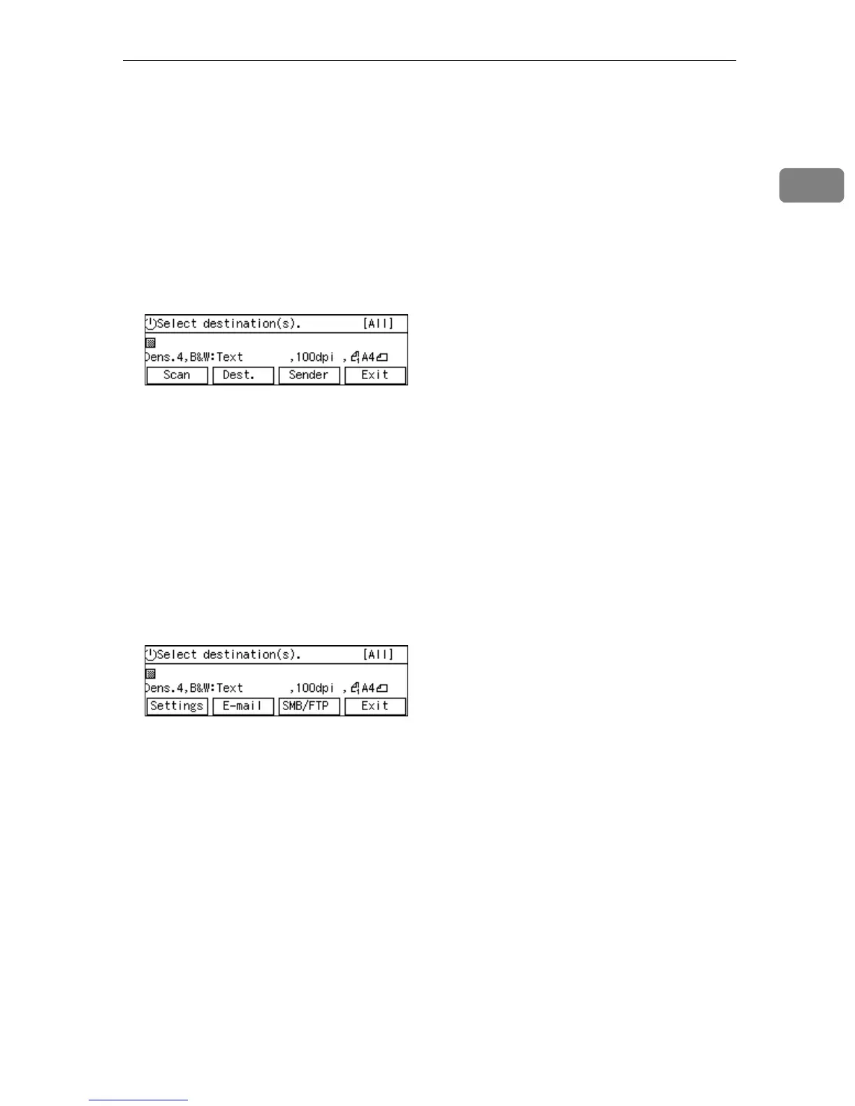 While this screen is displayed, pressing [Dest.] enables you to deliver scan