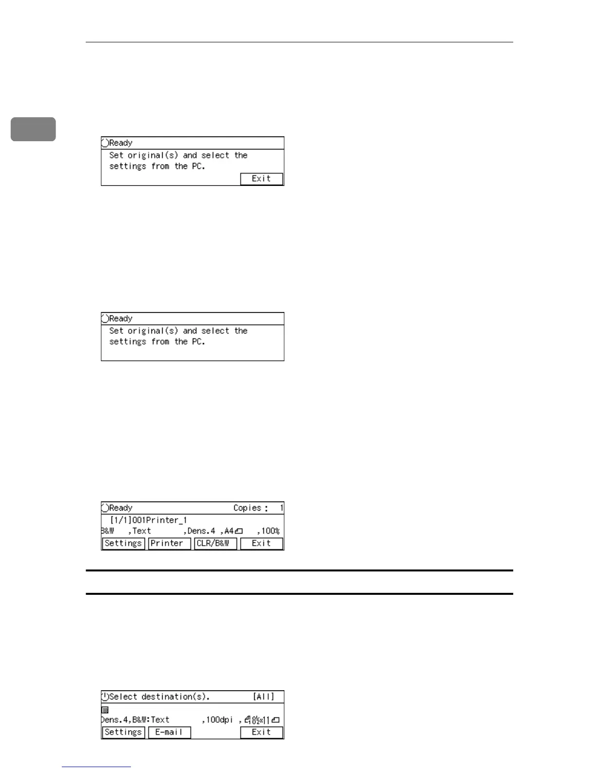 While Select Method screen, Delivery Server standby screen, E-mail/Send